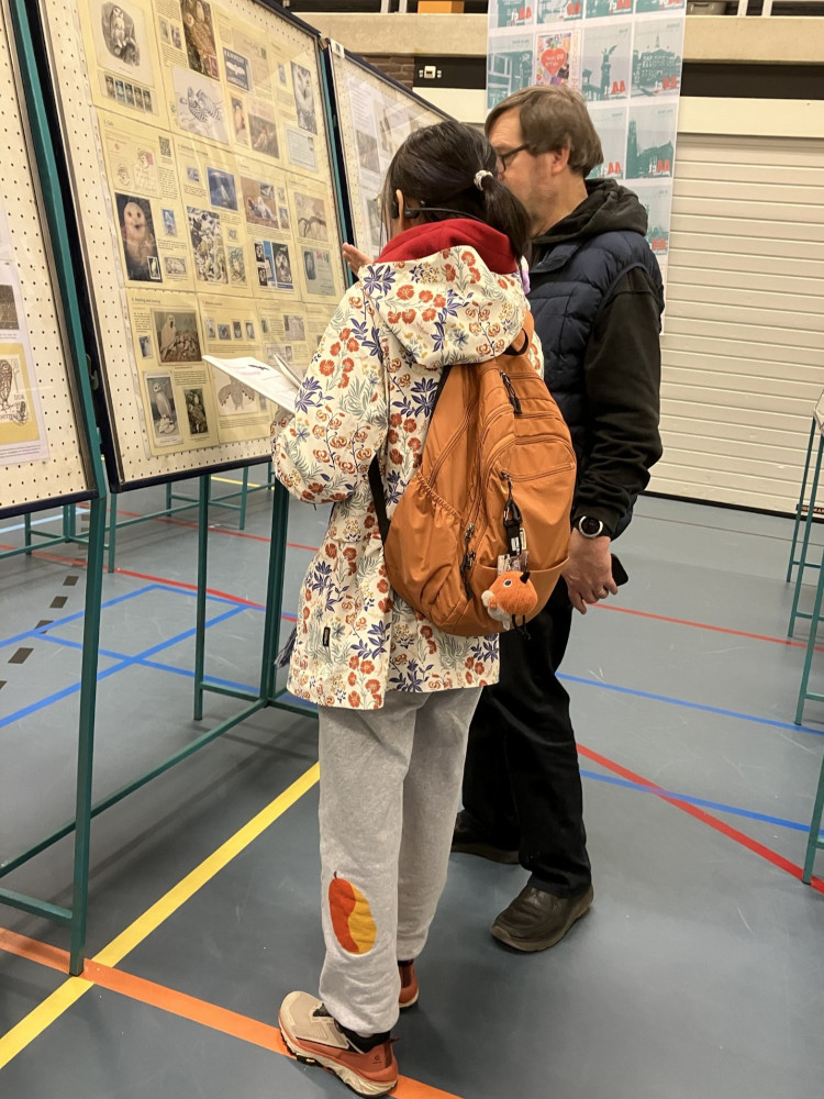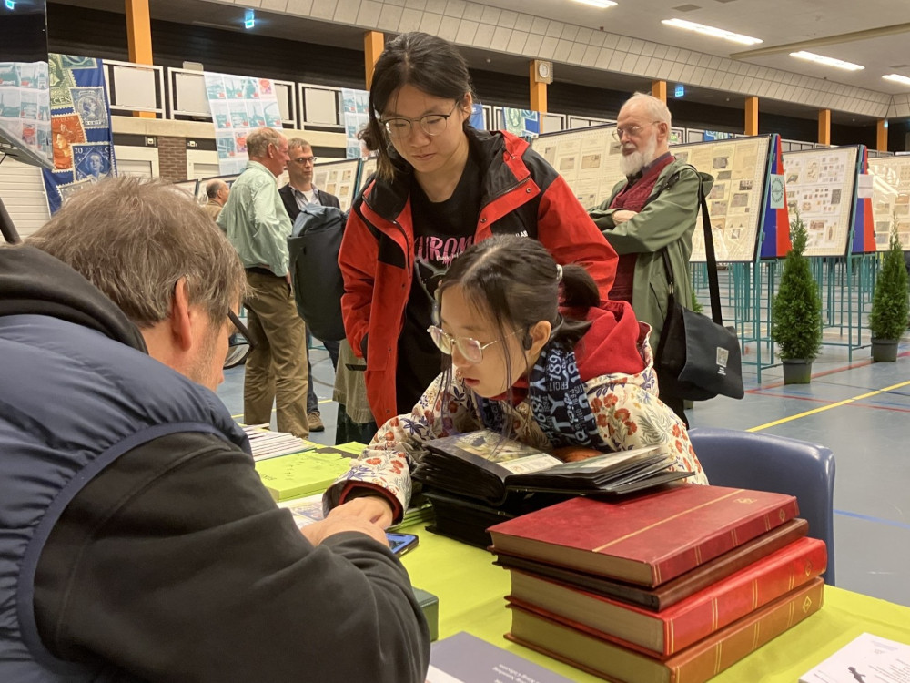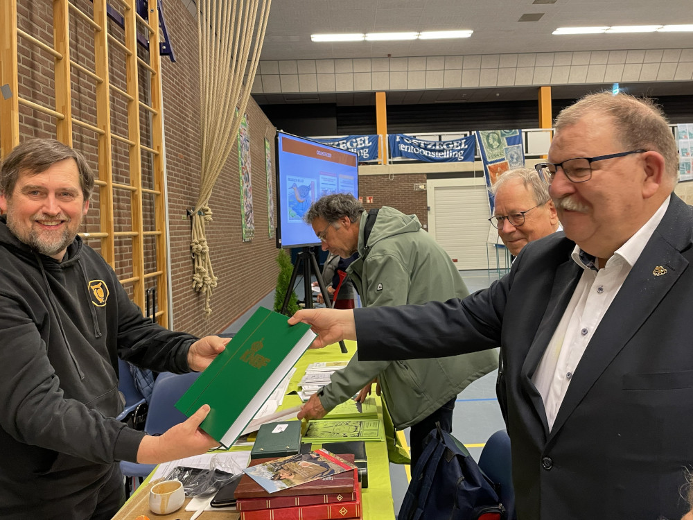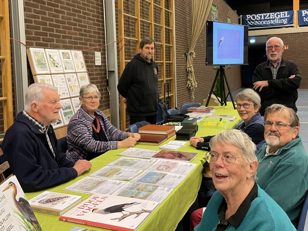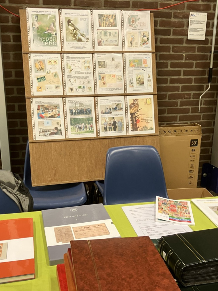 Vrijdag 24 en zaterdag 25 oktober werden grotendeels doorgebracht in de expositieruimte. In het geval van de standhouders, uiteraard vooral bij de stand. We mochten redelijk wat bezoekers, meestal na een uitnodiging vanuit ons, meer vertellen over onze club en de vogelfilatelie. Met alle mogelijkheden van dien. Natuurlijk verwezen we naar onze veertig kaders! Dan bleek af en toe dat men juist NA het bekijken daarvan, op zoek ging naar onze stand. Jammer dat we onder de bezoekers maar weinig leden van onze PAGO-groep konden ontdekken. Extra blij werden we dus van de gesprekken met, en de complimenten van enkele leden en oud-leden (Philip de Boer, Dieter Bohnenkemper en …..). Ook verzamelaars van andere motieven binnen de filatelie kwamen een praatje maken. De meesten daarvan namen zelf niet/ nooit deel aan een tentoonstelling. Ook waren er vogelaars die informeerden of we zelf wel eens iets ‘in het wild’ met vogels ‘deden’…. Of ‘reizigers’ die hun vogelwaarnemingen in binnen- en buitenland in fotoboeken vereeuwigden. De mooiste ontmoeting was met twee Chinese Wageningen-studentes met interesse in vogels! Te bescheiden om een stockboek te bekijken of iets te vragen. Maar toen eenmaal een vraag vanuit Koenraad werd gesteld, waren ze niet meer te houden…. Over en weer een uitwisseling van waarnemingen, vergelijkingen tussen o.a. ‘onze’ uilensoorten en de Chinese. Hun vertedering over onze waterspreeuw en vooral de grappige witte kwikstaarten. Beladen met adressen en sites voor o.a. meer informatie verlieten ze de stand, om plaats te maken voor andere geïnteresseerden. We hebben zelfs enkele (mogelijk) nieuwe leden kunnen aantrekken.