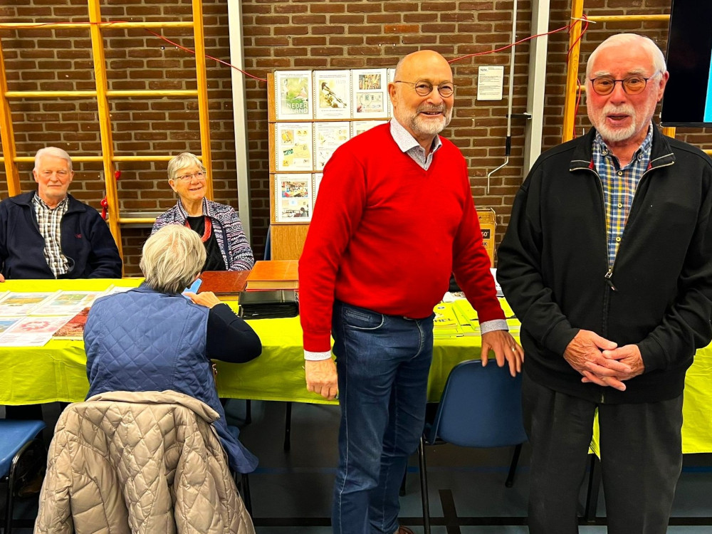 Terugblikkend kunnen we spreken van een geslaagde werkvakantie. Veel gezien, gehoord, geleerd ook. Genoten van alle onverwachte ontmoetingen en -niet te vergeten- van de 220 kaders. Het korte, maar gewaardeerd huldigings-bezoek van de voorzitter en secretaris van de KNBF, Kon. Ned. Bond van Filatelisten Verenigingen aan onze stand was een verrassing. Maar vooral de onderlinge samenwerking tussen de standhouders van onze club zal ons bijblijven.