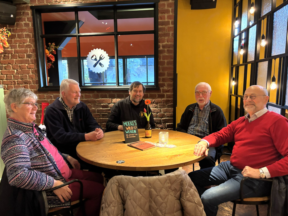 Donderdag 23 oktober werden ’s middags de kaders gevuld door de inzenders. Daarna werd door de echtparen Van Nies en Van der Sanden voor zo ver als toen al mogelijk was, de stand ingericht o.l.v. Koenraad Bracke. Als vijftal werd de dag afgesloten met een heerlijk diner bij “Moeke” in Nijkerk. Ook vrijdag dineerden we daar, maar toen was ook Dieter Bohnenkemper van de partij.